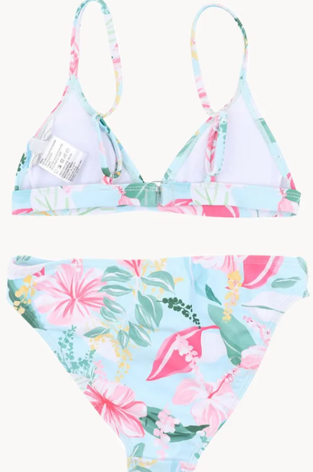 Minihaha Teen Girls Keely Tri Set in Blue/Multi offers a fixed tri style top, adjustable straps, secure back clip, fully lined, and is available in sizes 8-14.