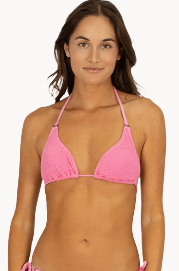 The Baku Ibiza Slide Tri in Flamingo features adjustable straps, a sliding clasp back, and a flattering design, available in sizes 6-14.