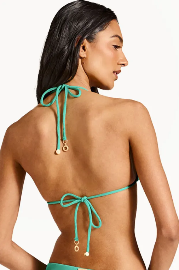 Tigerlily Classics Tara Tri in Ocean features a triangle shape, removable cups, adjustable ties at neck and back, and is best suited to A-C cup sizes.