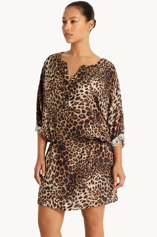 Monte & Lou Romeo 3/4 Sleeve Shirt Dress in Leopard features a centre front button placket, 3/4 length sleeves and tie sides to create feminine shaping.