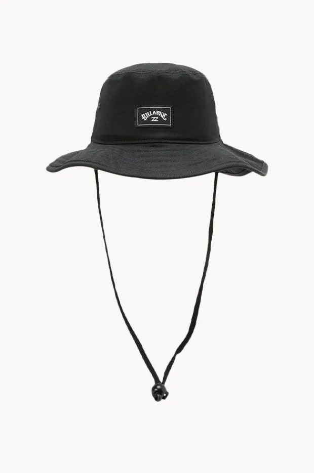 Billabong Boys Big John Hat in Black features a bucket style hat, chin cord with adjustable toggle, and is available in O/S.