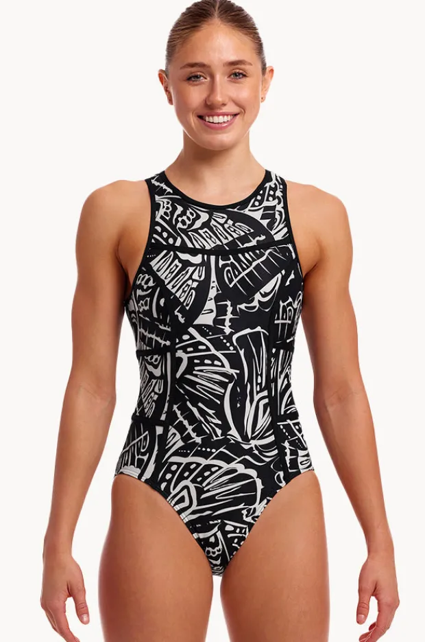 One Pieces|Funkita Night Flyer Hi Flyer One Piece Black/white