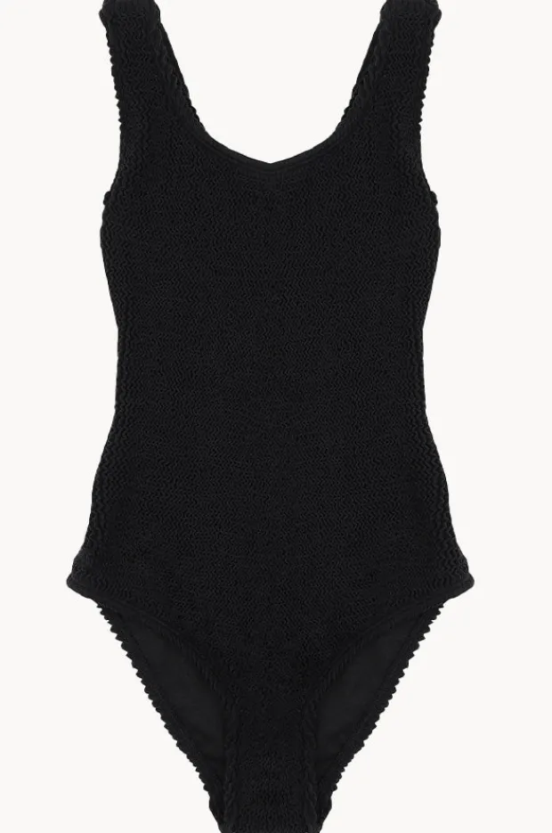 Minihaha Teen Girls Coco One Piece in Black features a scoop neckline, cross back shoulder straps, fully lined, sun protection, and is available in sizes 8-16.