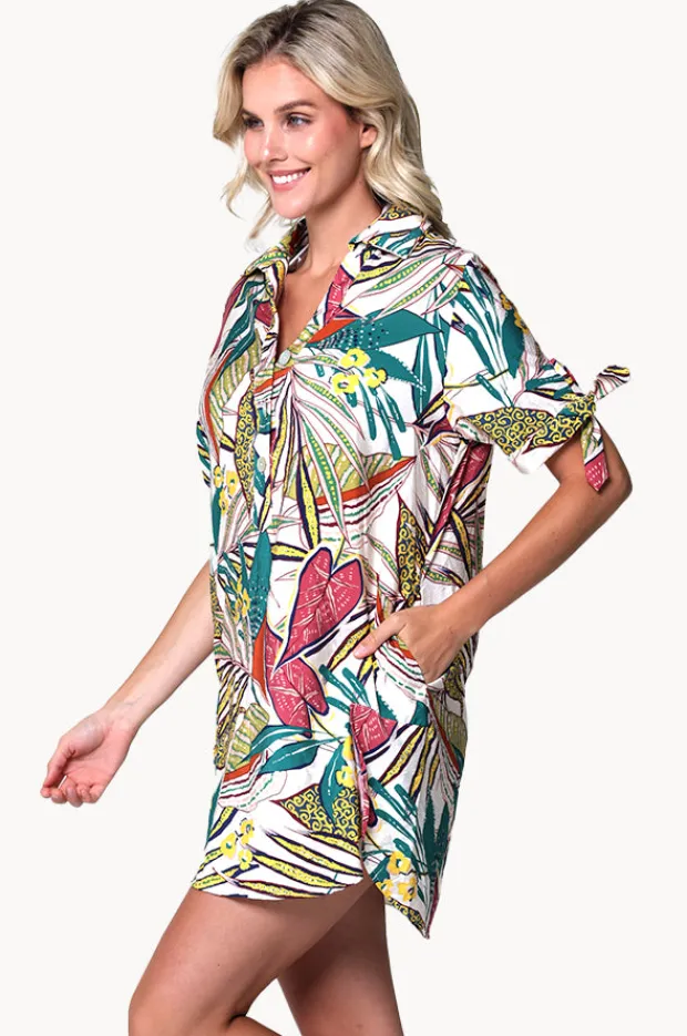 J’Valdi Funky Palm Tie Sleeve Button Shirt with;