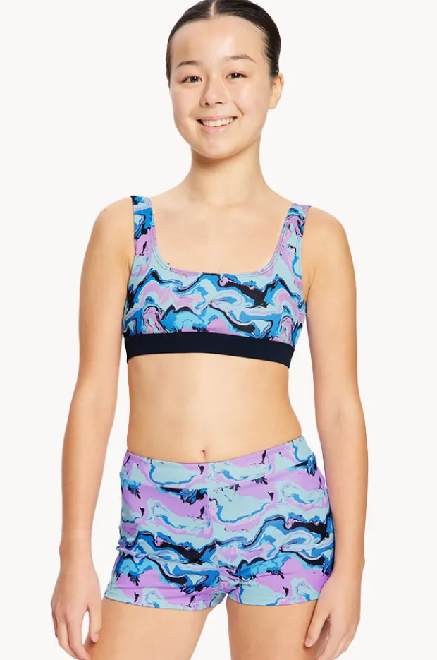 Period Swimwear|Bikini Sets|Modibodi Girls Marble Reversible Crop Set Blue/Navy