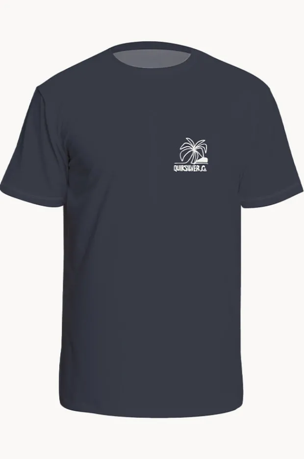 Quiksilver Boys Everyday Surf Short Sleeve Suntop in Ink features a crew neck, long sleeves, sun protection rating, loose fit, and is available in sizes 4-7.