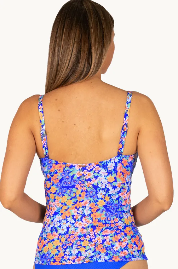 Baku Biarritz D/E Cup Wrap Tankini Separate in Sapphire features a wrap front, underwire, powermesh, adjustable straps, and is best suited to D-E cup sizes.