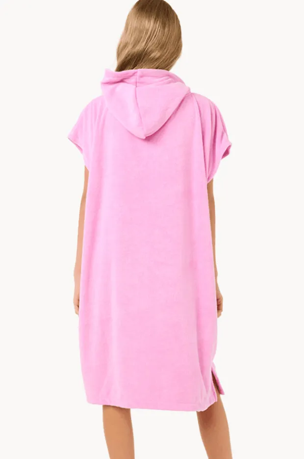 Rip Curl Girls Classic Surf Hooded Towel in Pink features a hood, Rip Curl embroidered branding, side splits, and is made from quick-drying Microfibre.