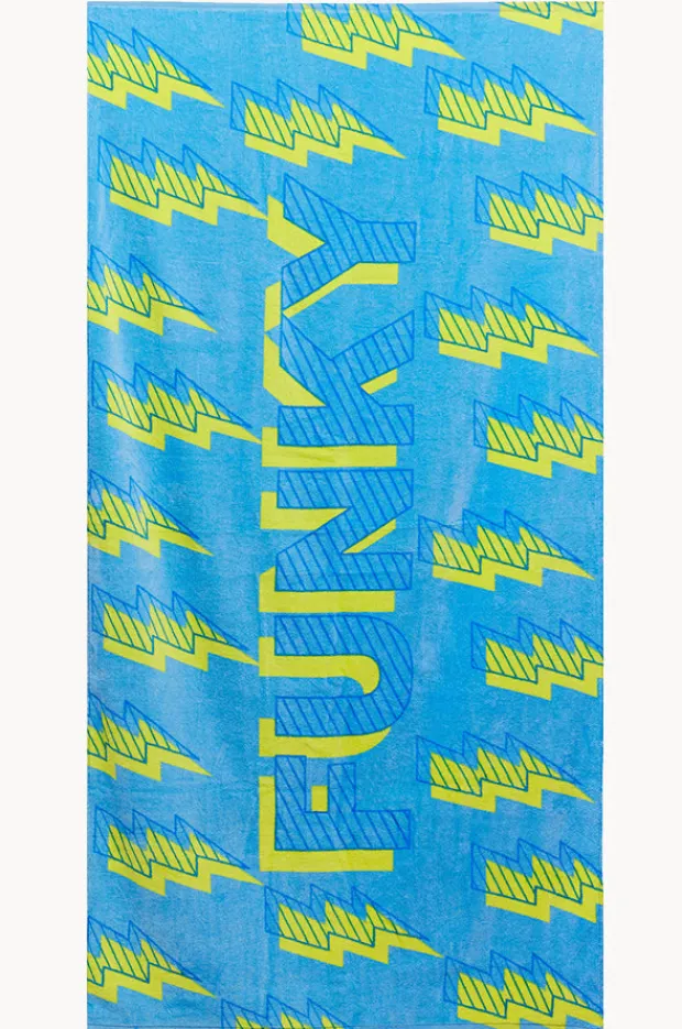 Funky Trunks Bolted Towel in Blue/Yellow features a lightweight and absorbent fabrication.