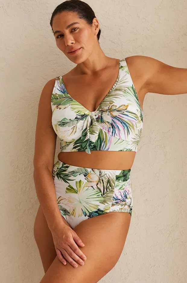 Artesands Lushara Cezanne D/DD Cup Bra in White offers a crop top with mock tie, underwire, soft cups, powermesh, back clip, is best suited to D-DD cup sizes.