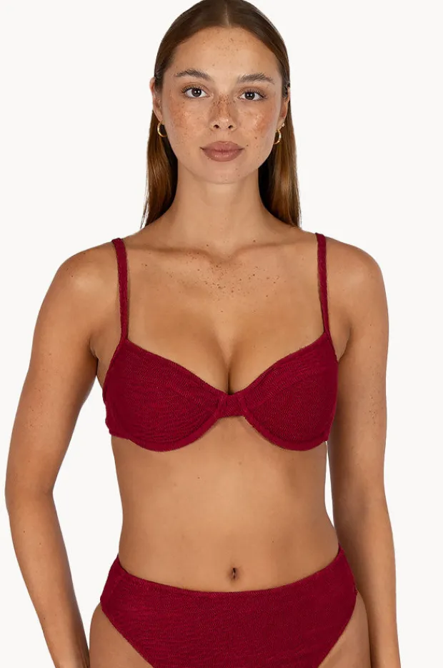 Baku Ibiza B/C Cup Underwire Bra in Scarlet features underwire, removable cups, adjustable straps, back clip, and is best suited to B-C cup sizes.
