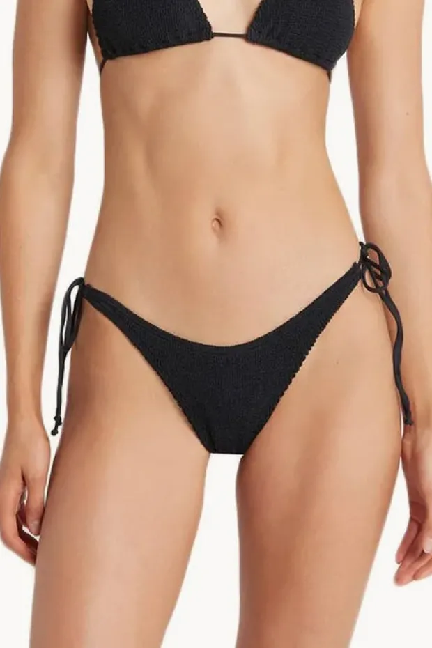 The Bond-Eye Eco Serenity Brief in Black features a raised legline, adjustable tie-side and cheeky coverage, designed in a one size fits all stretch fabric.