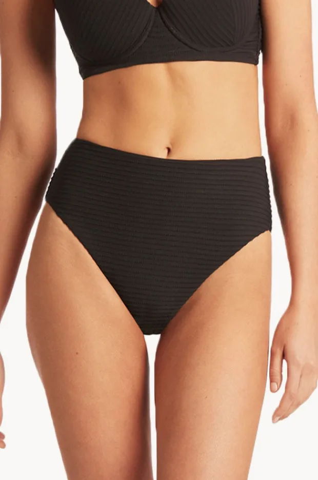 The Sea Level Spinnaker Retro High Waist Pant in Black features retro-inspired high waist fit and soft waistband, designed for sizes 8-16.