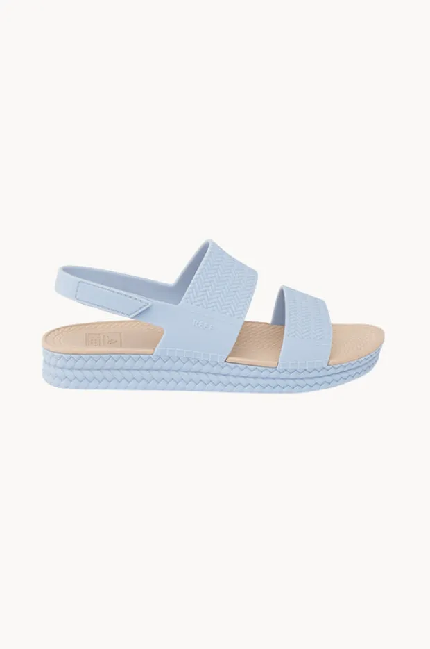 Reef Water Vista Sandal in Dusty Blue offers a two-bar strap design, arch support, water-friendly, lightweight moulded footbed, and is available in sizes 6-10.