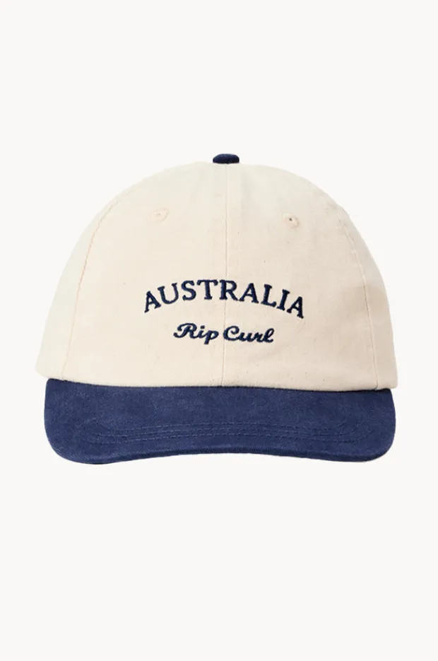Rip Curl Global Destination Cap in Navy features contrast panelling, curved peak, embroidered detailing, adjustable back, and is available in size O/S.