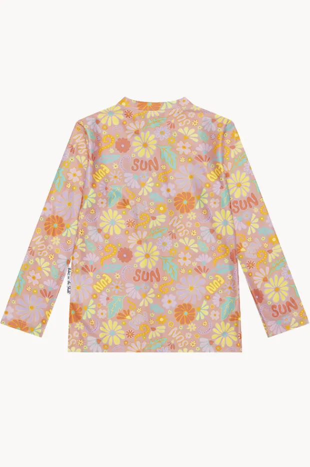 Babes In The Shade Teen Girls Sunny Girl Suntop in Orange/Pink offers UPF 50+ sun protection, long sleeves, chlorine resistant, and is available in sizes 8-14.