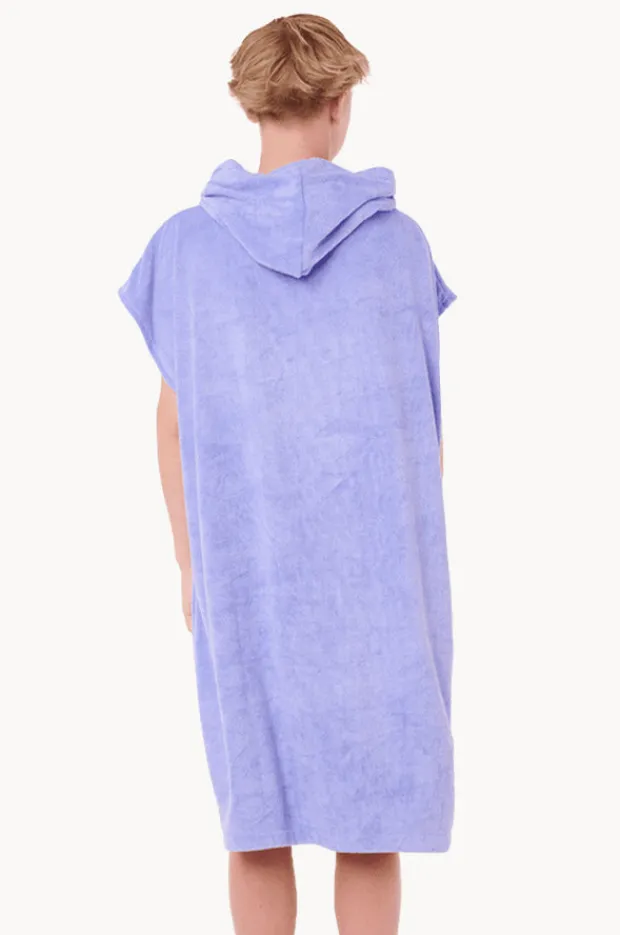 Rip Curl Boys Brand Hooded Towel in Bright Blue features a hood, quick drying fabric, side splits, and is available in sizes S-L.