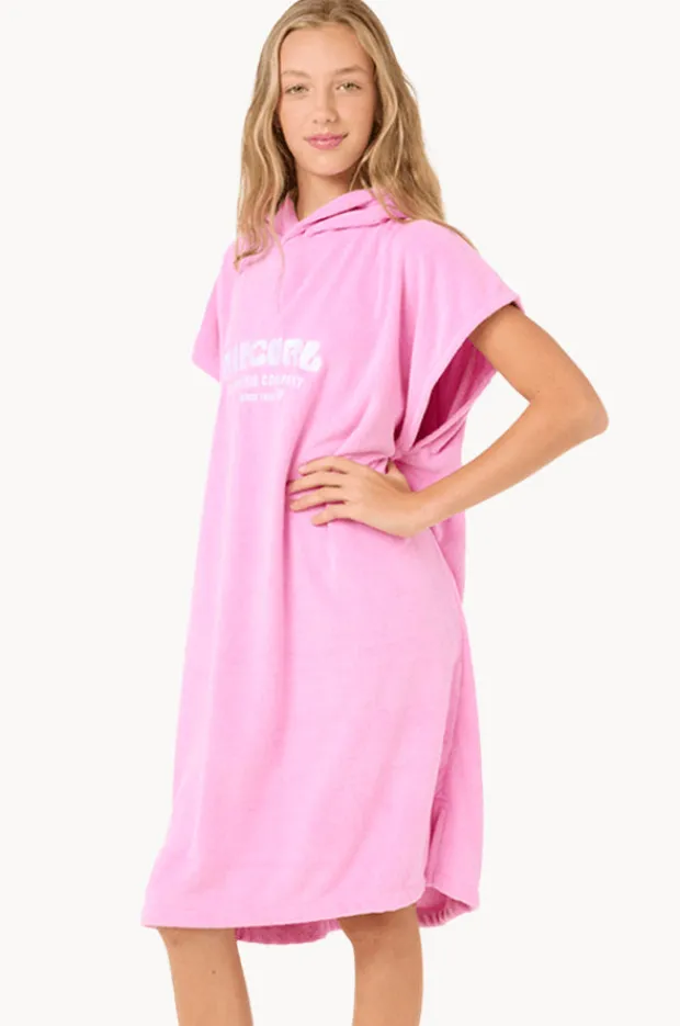 Rip Curl Girls Classic Surf Hooded Towel in Pink features a hood, Rip Curl embroidered branding, side splits, and is made from quick-drying Microfibre.